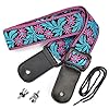 CLOUDMUSIC Jacquard Weave Style Hawaiian Ukulele Strap (Rosy Flowers With Bright Blue Leaves)